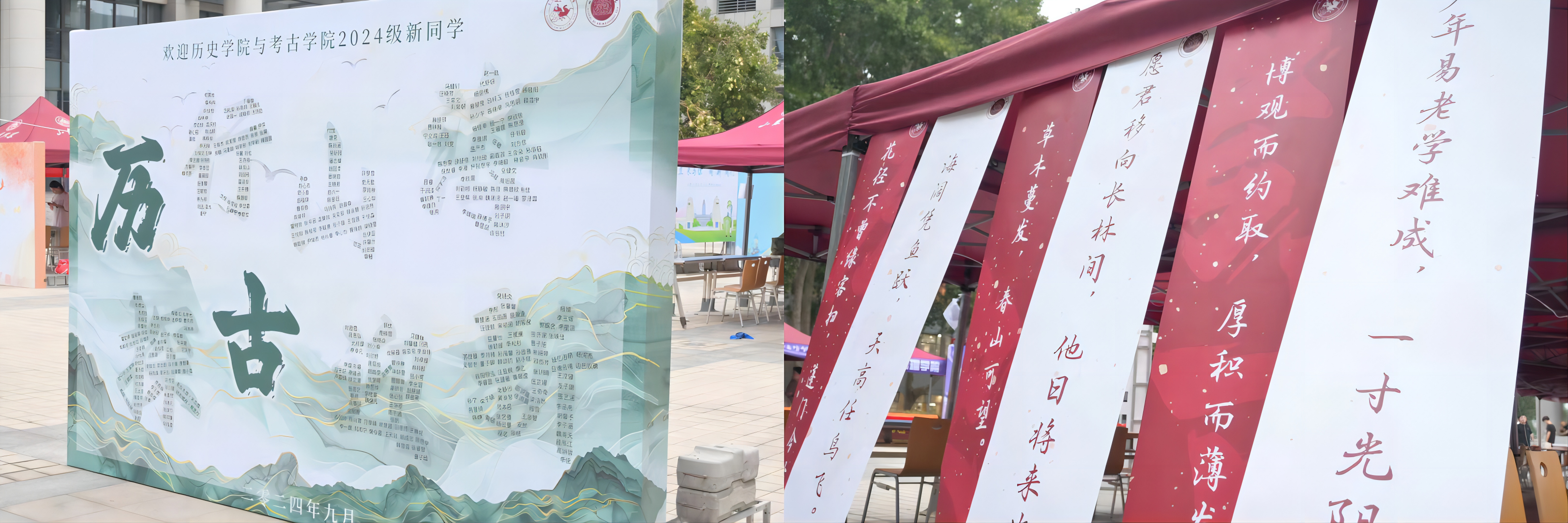 学院设置原创特色“历经山海,探古迎新”主题姓名展板,新生可以在展板上寻找自己的名字,通过使用学院特色道具完成拍照留念,增加迎新活动互动性,也让每位新生切实感受到加入了历史学院、木瓜视频