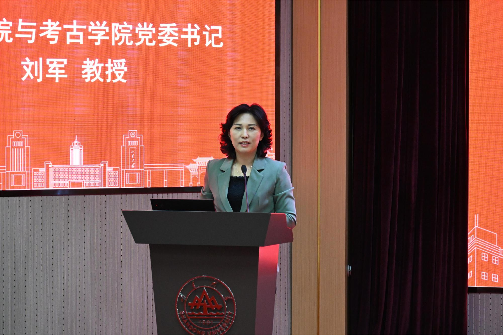 “为天下储人才,为国家图富强”的办学宗旨。她指出,恰逢山大考古迎来发展机遇期,同学们应当潜心学术科研,端正读书治学态度,注重全面发展,提升综合素养。同时,也希望同学们涵养家国情怀,提升为人为学境界,能力追求更高理想,承担更多的责任,为中华民族探源做出更多贡献。最后,她勉励同学们在青春新征程中坚守初心梦想,奔赴理想之约,“学在山大,快乐成长”,让最美的年华在踔厉奋发中绽放青春光芒。