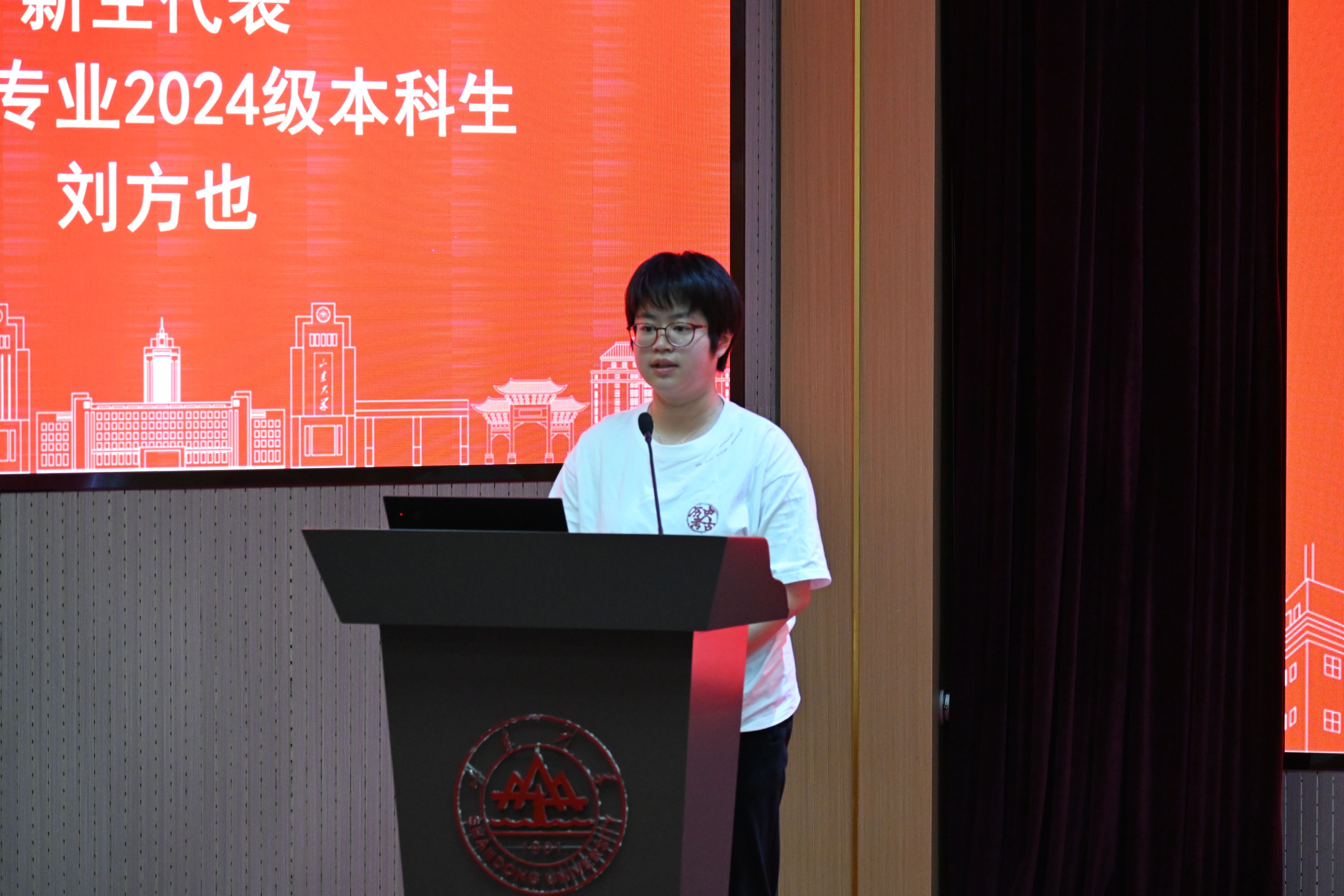 新生代表、考古学专业2024级本科生刘方也分享了她对山大和考古的初印象,表达出自己对未来的学习生活的憧憬与期待,号召来自五湖四海的同学们携手并进,在山大考古这片沃土上茁壮成长。