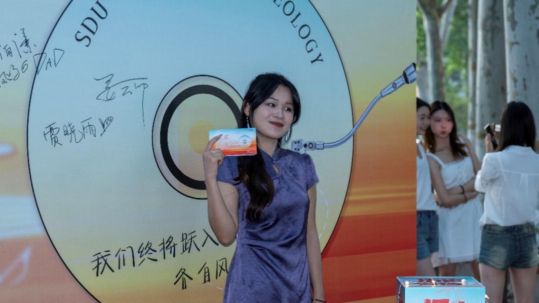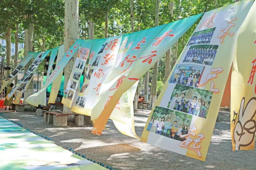 学院在文渊林设置毕业拍照互动区域,歌会前,毕业生们纷纷合影留念,回忆大学四年的青葱岁月。