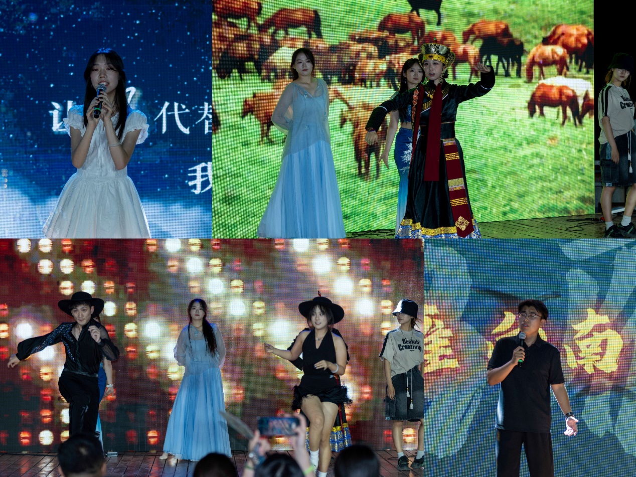 本次歌会由毕业生张少璇、李梓杰主持。歌会开始前,现场播放了毕业生们的大学生活剪影《逐空》,祝福毕业生鹏程万里、未来可期。开场舞《Hybe boy》燃爆全场,用动感之美拉开毕业歌会的序幕。