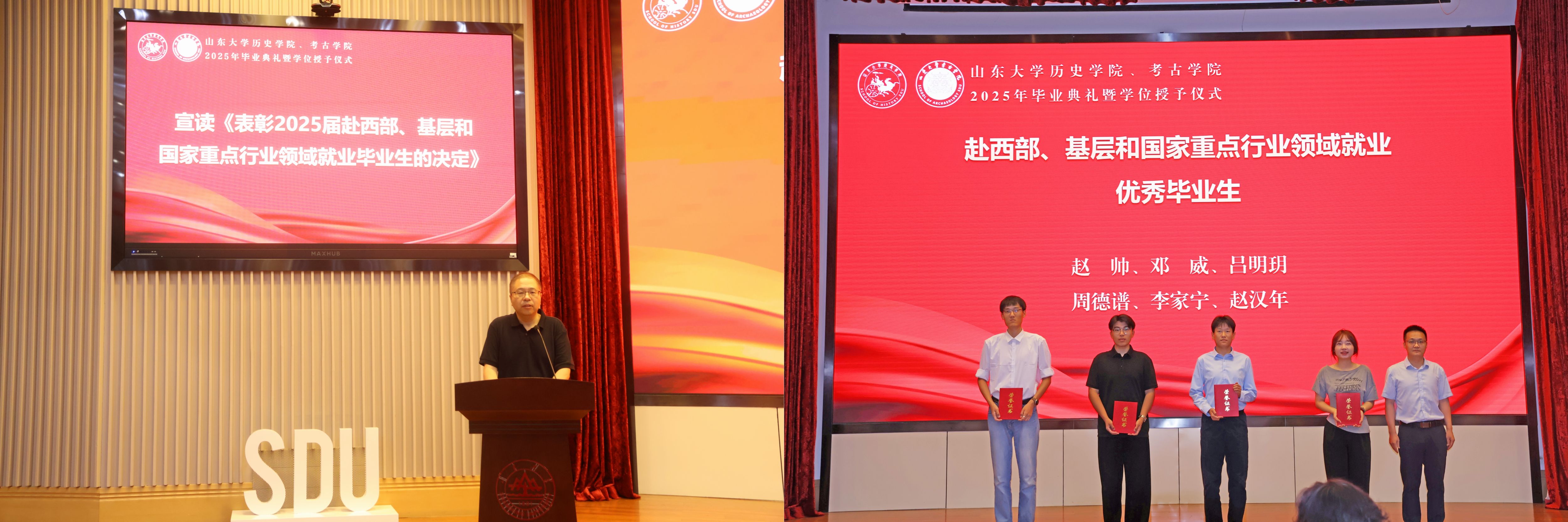 表彰2025届赴西部、基层和国家重点行业领域就业毕业生的决定》,郎剑锋为赴西部、基层和国家重点行业领域就业优秀毕业生颁发证书。