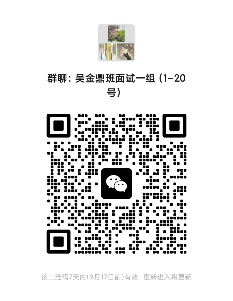 请入选同学按表格中分组情况扫描二维码加入微信群,并及时更改昵称为实名,以方便接收后续面试安排的各项通知。