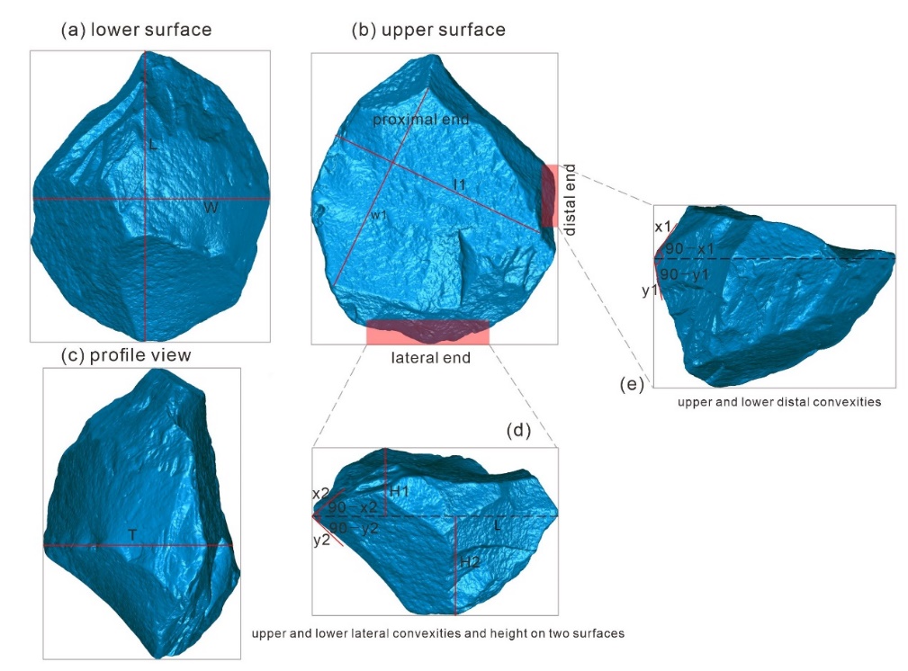 研究团队通过对枫树岛遗址出土的8件石制品进行了高精度的3D扫描,获得了其在尺寸、石核剥片面与预制面的不对称程度、石核远端与侧边的弯曲度等关键的形态和技术数据,并依此对比了南非Canteen Kopje遗址出土30件典型维多利亚石核标本。结果表明,枫树岛遗址的石核和南非Canteen Kopje遗址维多利亚石核在预制过程、最终剥片、尺寸和形态上具有极高的相似性,表明二者在技术上存在较高的一致性。因此,基于现有标本,可以将枫树岛的石核归入西维多利亚石核技术类型。但是与此同时,较小的样本量并不足以建立完整生产序列,明确的技术认定还需要更多的样本,这有赖于未来对枫树岛遗址进一步的发现和研究。本文中,暂将该类技术定为“似维多利亚石核技术”。