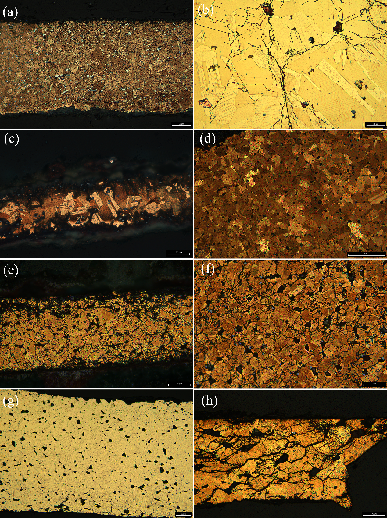 金相分析显示,本研究所有样品均为锻造成型(图2),大部分样品壁厚小于0.5mm。48 件样品中仅有两件含少量铅(铅含量在3%左右),其余均为铜锡二元合金,锡含量为6-18%,说明工匠了解合金成分对性能的影响,选择铜锡二元青铜制作锻打成型的青铜器。研究认为,锻造青铜器中微量的铅可能来源自矿石的杂质、冶炼过程中的污染以及青铜器的重熔利用,可能不是工匠有意添加的合金元素。在锻造青铜器时,工匠会通过控制锻打程度、回火后加工等工艺得到合适的壁厚以及硬度,甲片的锻打程度以及硬度高于容器。可知中国古代青铜工匠的高超锻造技术以及对于合金性质的深刻认识。