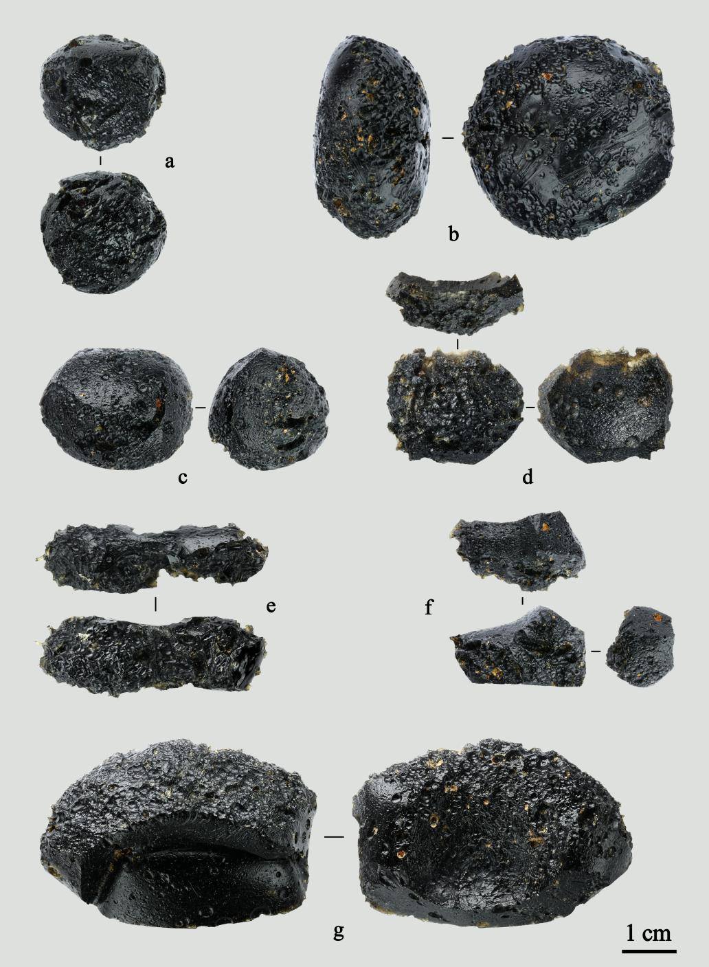 图3.大梅南半山遗址出土的各形状玻璃陨石