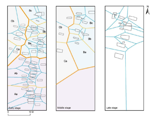 图一 早中晚三期墓葬泰森多边形分析图