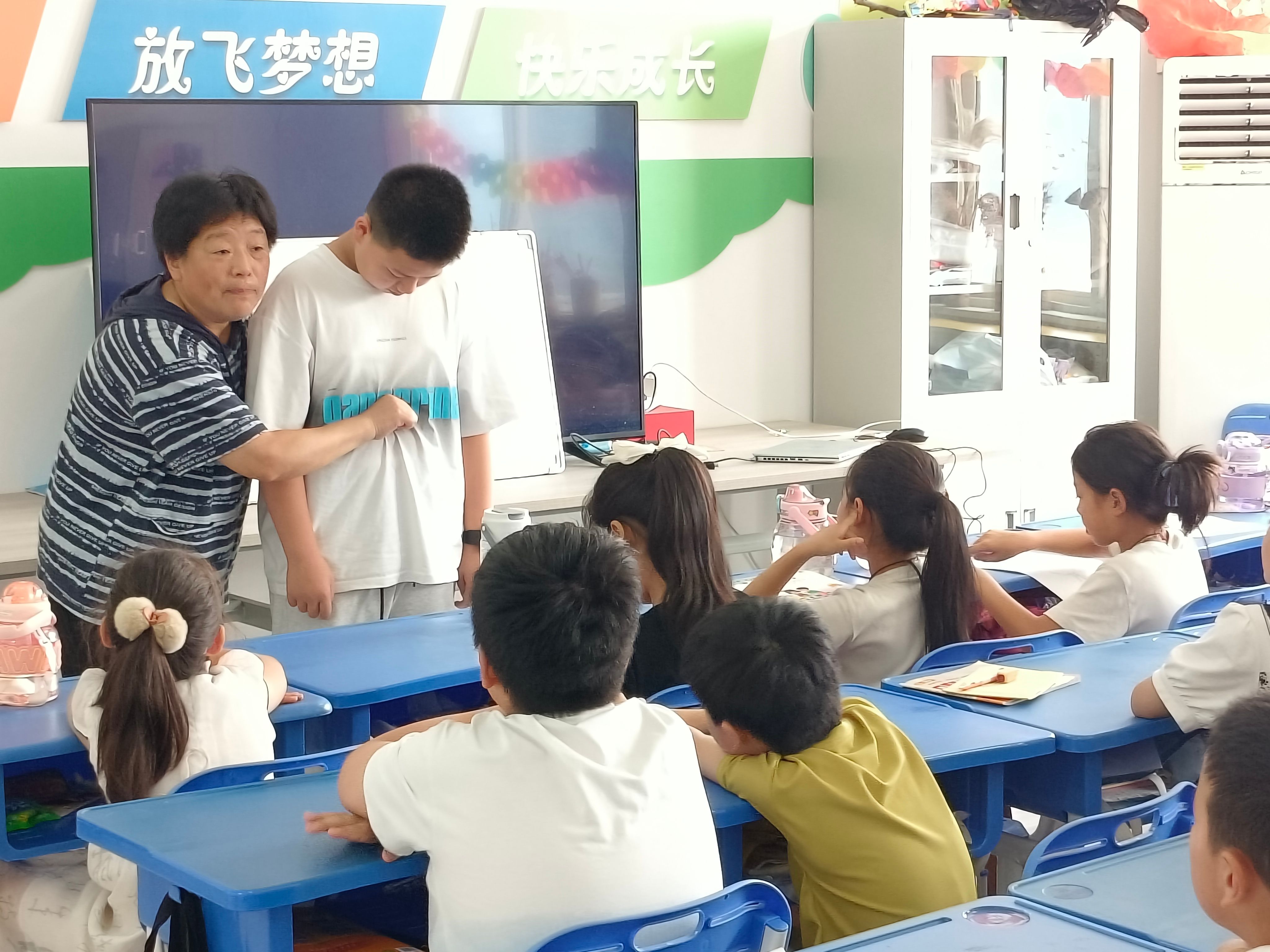 在第一周的上课过程中,团队还与金庄镇文旅科的老师们一道为孩子们上了一堂别开生面的安全教育课。在课堂上,孩子们学习到了有关海姆立克急救法的有关知识,增强了自我保护意识。