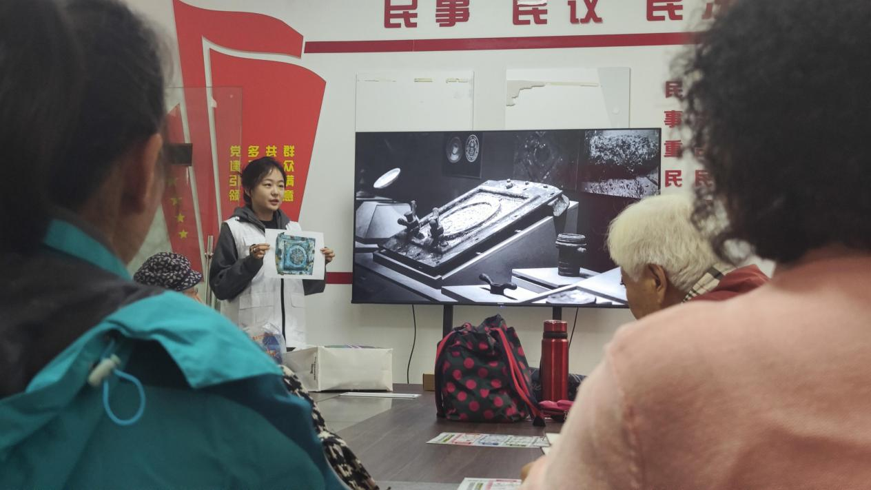 在文物背景宣讲环节,同学通过精心制作的PPT,结合图片、文字资料与讲解的紧密配合,生动再现了甲午战争时期的场景,使居民们能够更加直观地感受那段波澜壮阔的历史。