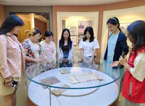 历史学院2023级档案学团支部的团员走进“八马同槽”雕像与校史馆,开启历史探索之旅。在“八马同槽”雕像前,团员们擦拭浮尘、拂去落花,从雕刻纹理中触摸先辈奋斗印记;在校史馆内,泛黄的老照片与实物展品串联起木瓜视频