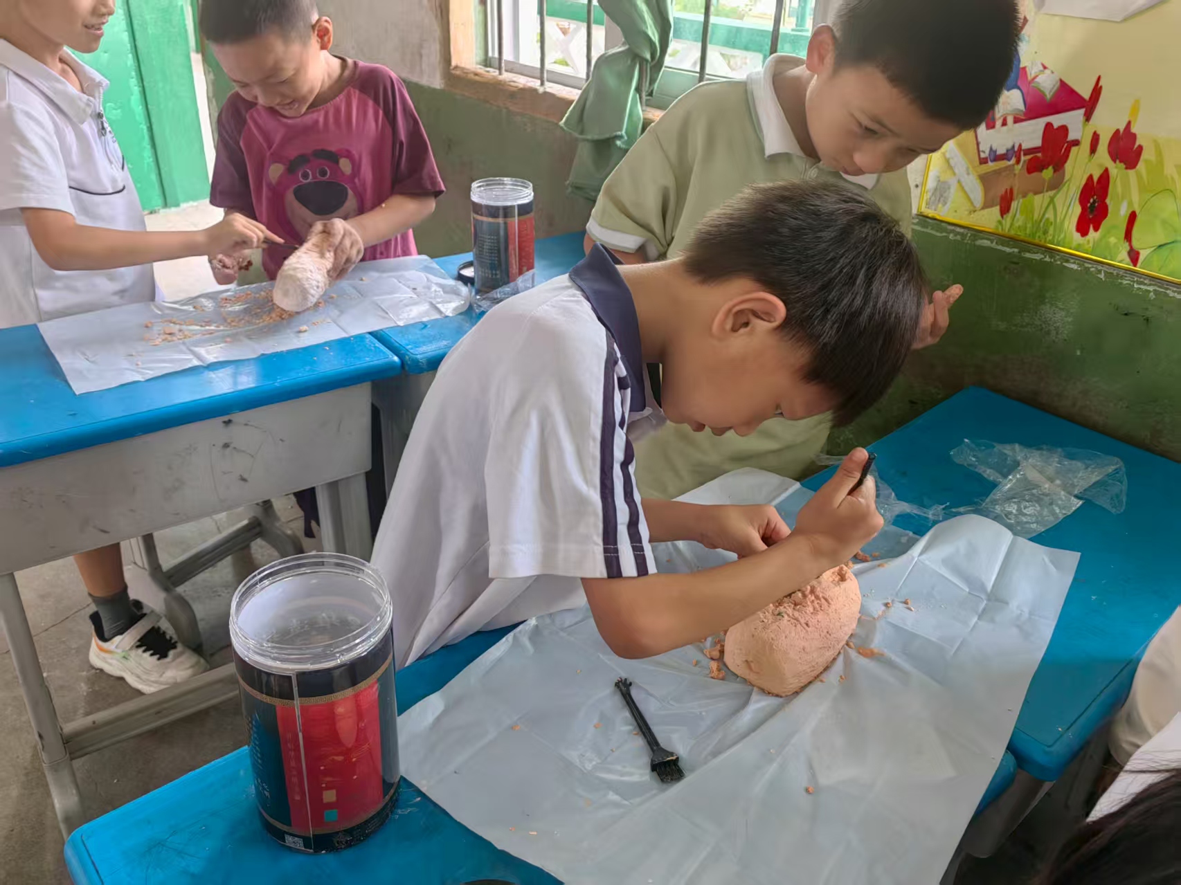活动期间,团队充分发挥考古学科特色,为“护苗学堂”的孩子们量身打造了丰富多彩的科普实践内容。核心环节聚焦“考古科普三部曲”:《陶片会说话》课程生动演示了文物从发掘到修复保护的全过程,结合“考古盲盒”发掘体验,让孩子们亲手触摸“历史”,理解文物的珍贵与保护意义;《穿越百万年》人类起源介绍课,依托最新考古发现,深入浅出地解析人类演化关键阶段,带领孩子们探寻生命起源的奥秘;《探秘壳丘头》史前人类生活状况介绍课,则通过复原史前场景和工具模型,引导孩子们想象并理解远古祖先的生活方式。互动式的教学极大地激发了孩子们的好奇心与求知欲。