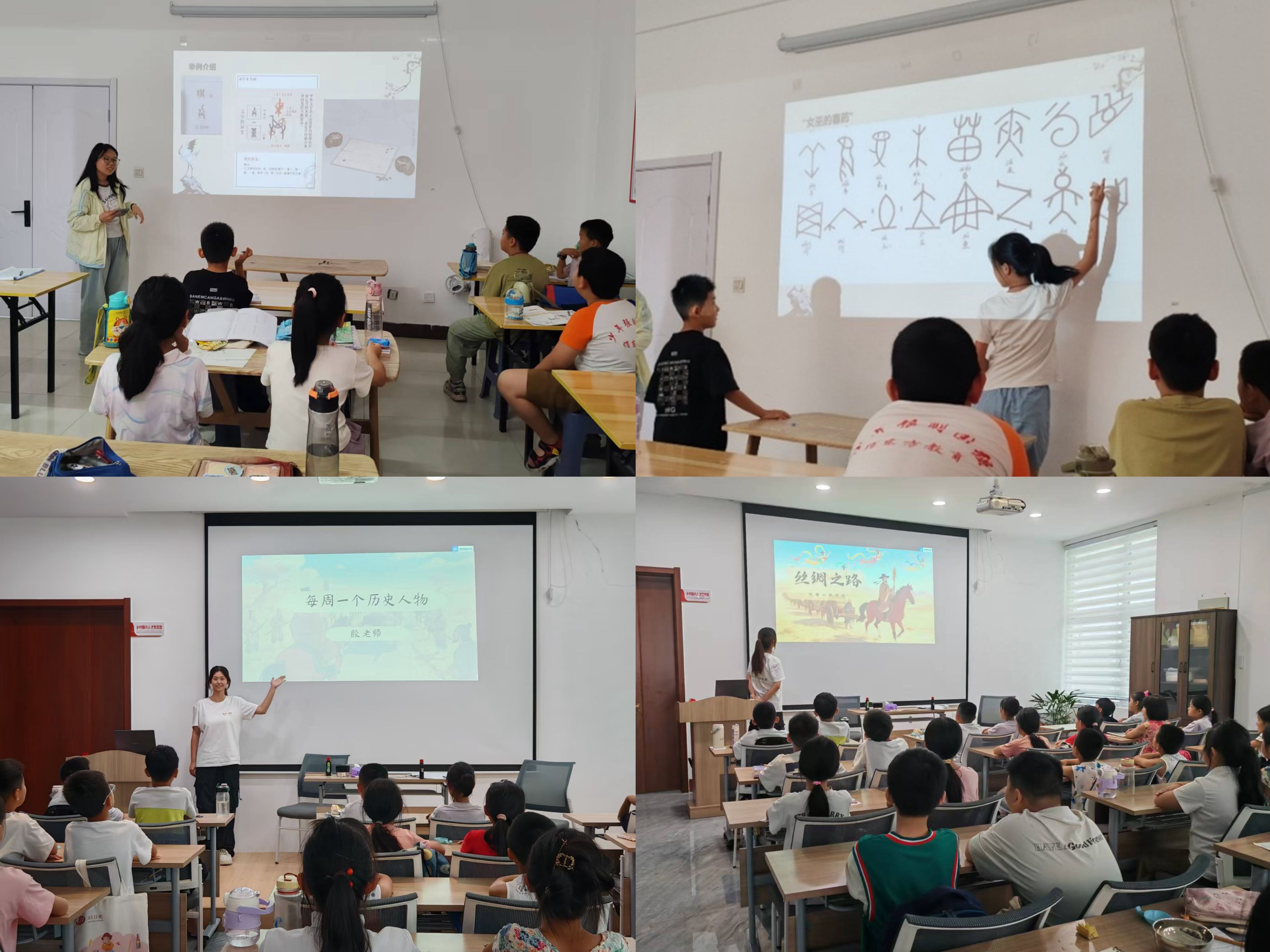 泉润青禾支教团、莒光育苗队、莒光探微队等队伍开设《奇妙古文字》课程,通过情景导入、以形辨字等喜闻乐见的方式,鼓励孩子们主动探寻文字背后的故事,增强对中华优秀传统文化的热爱与传承;依托《每周一个历史人物》专题,为小学生介绍张骞、郑成功等重要历史人物与民族英雄的事迹,培养中华民族共同体意识。